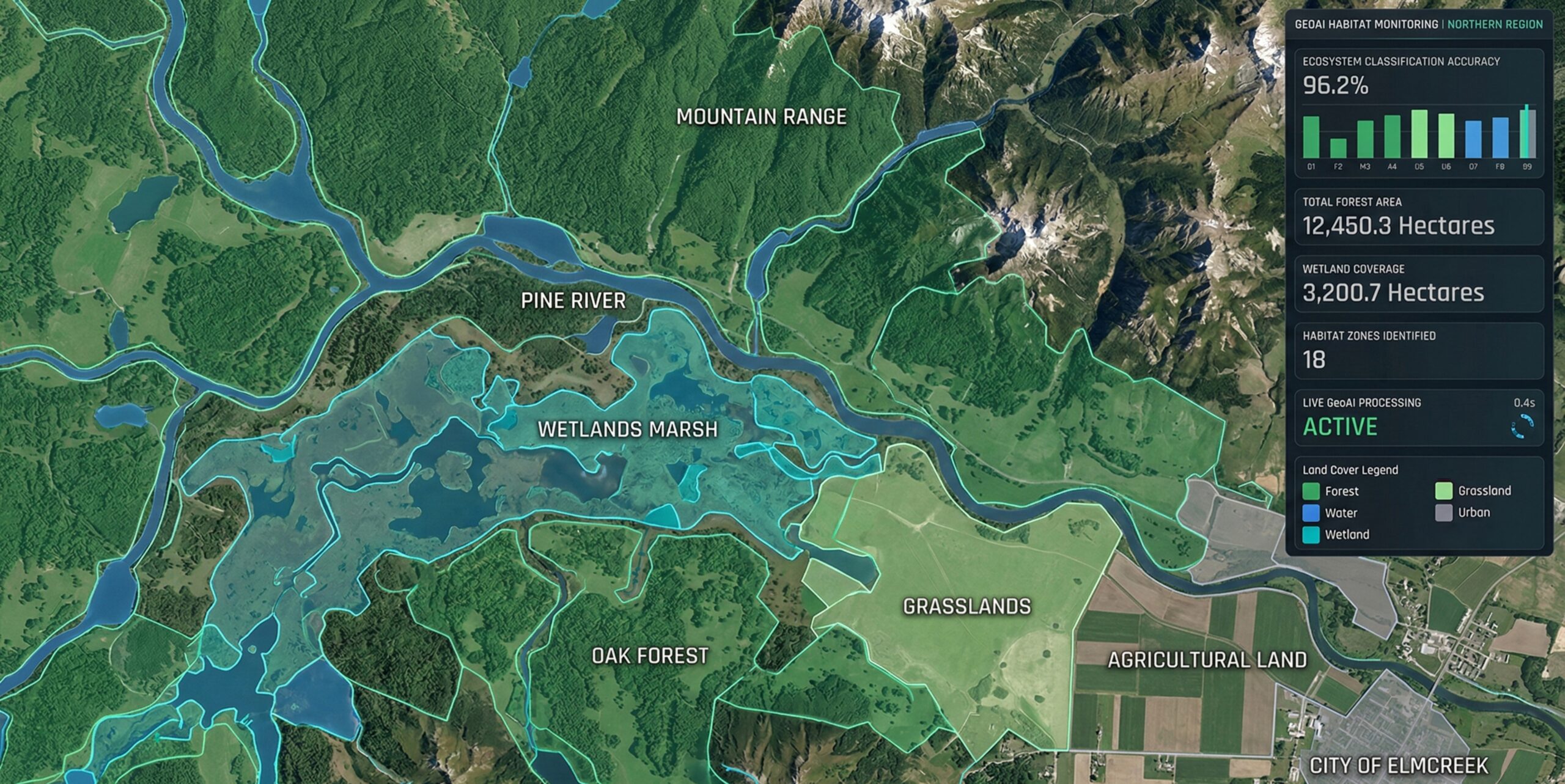 Build accurate spatial representations of ecosystems, habitats, and natural landscapes using AI-powered geospatial analysis.